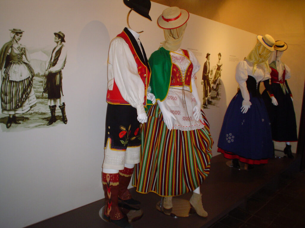 - Headpiece: Varies by municipality — a small decorated hat, a hair net, ribbons, or flowers. Ask in the costume shop what is traditional for the specific romería you’re attending.
